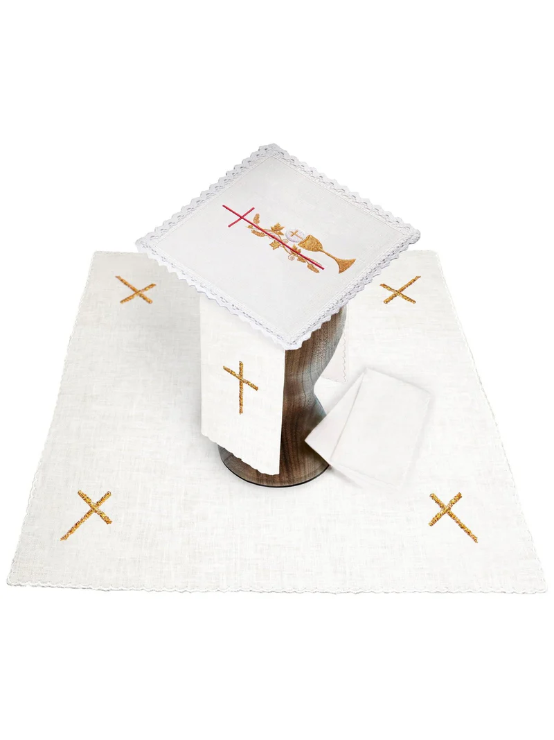 Kalichová súprava je vyrobená z vysoko kvalitnej látky s vyšitým eucharistickým motívom.