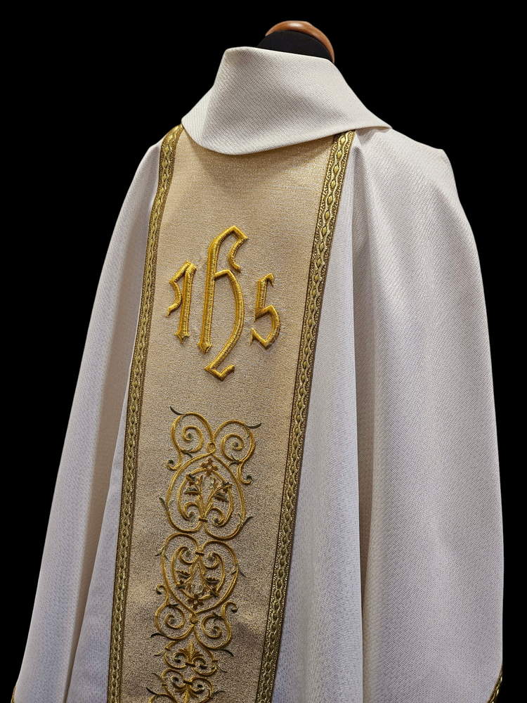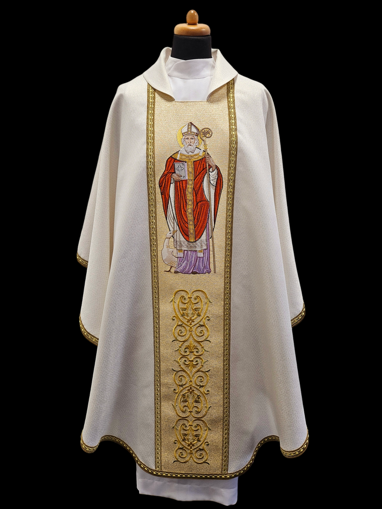Ornát ozdobený vyšívaným obrazom svätého Martina.
