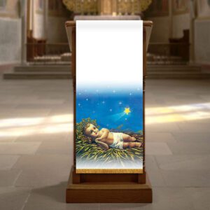 Obrus s potlačou, vyrobený z kvalitnej hladkej plameňovzdornej látky, 100% polyester.