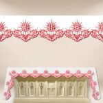 Ohňovzdorný polyester. Čipka vyšívaná iba vpredu. Výška výšivky je 20 cm.