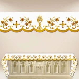 Ohňovzdorný polyester. Čipka vyšívaná iba vpredu. Výška výšivky je 16 cm.