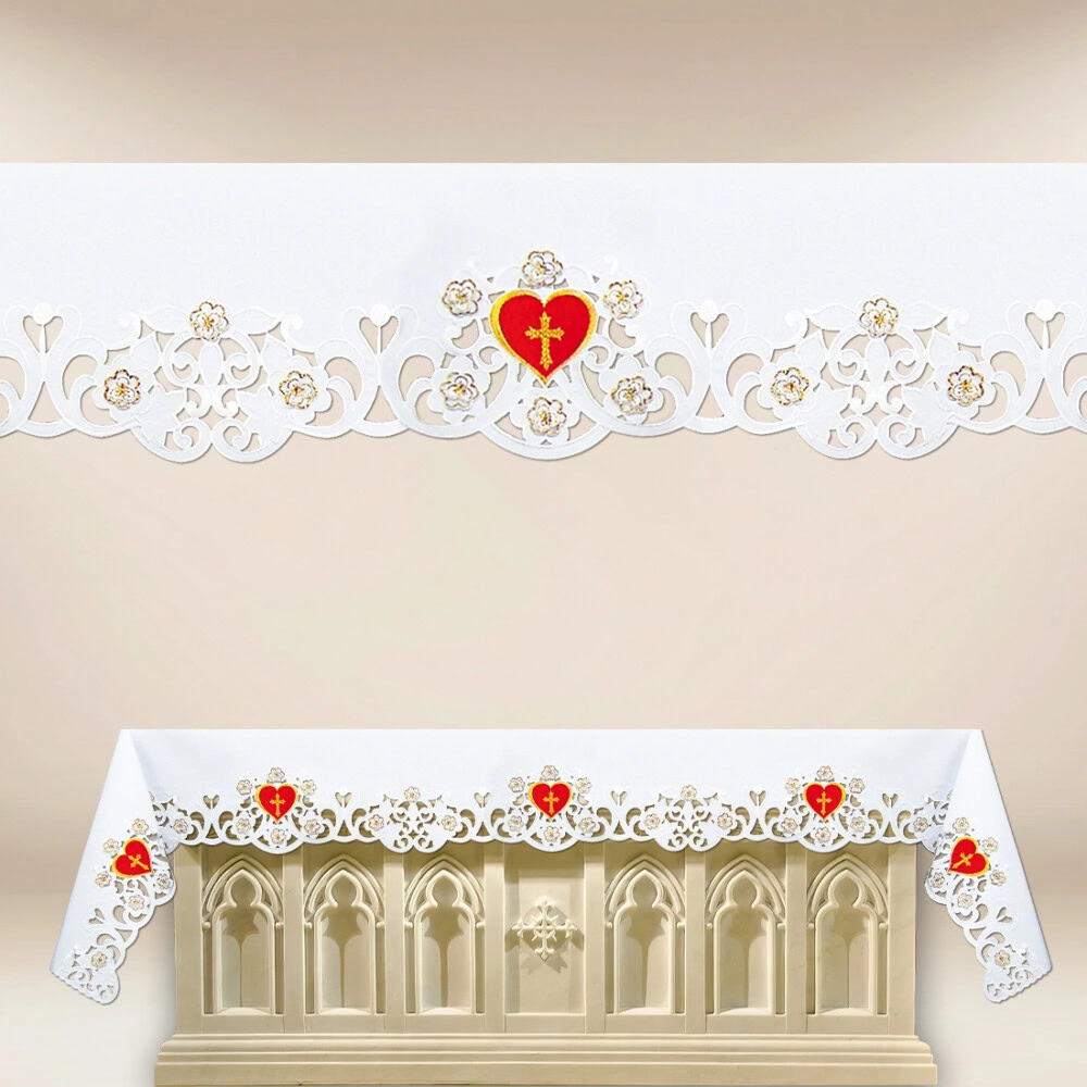 Ohňovzdorný polyester. Čipka vyšívaná iba vpredu. Výška výšivky je 19 cm.