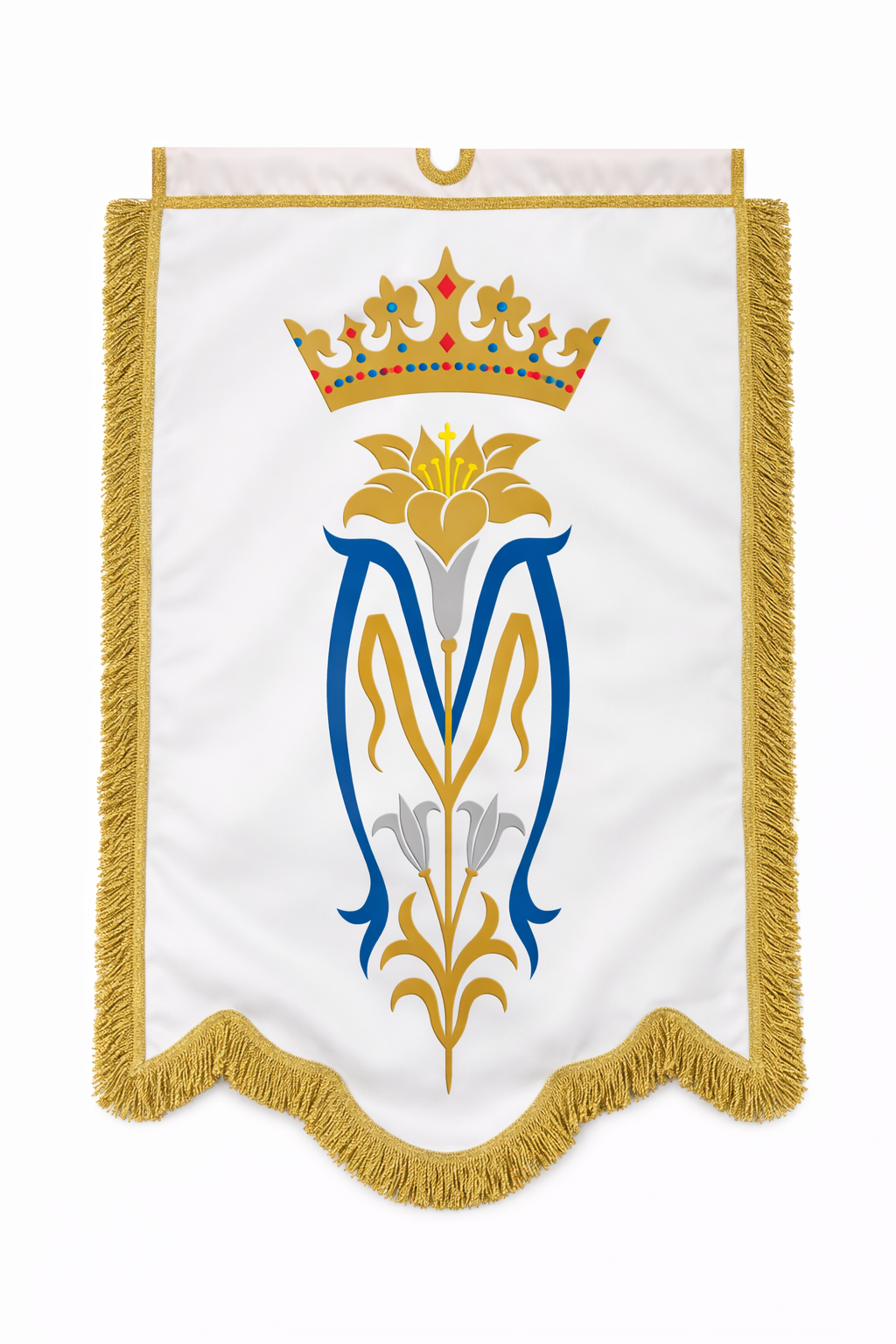 Obojstranná – 2 obrázky, tlač na tkanine, obšitá zlatými strapcami, profesionálne prevedenie.
